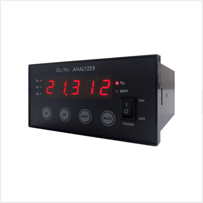 采用基于氧化鋯(Zirconia)技術的傳感器,它們能在ppm等級實現出色的精度,具備快速反應時間和長壽命、無損耗等優勢。采用RS485通訊,允許執行遠程校準和獲取測量數據。經過高性能32單位片機對信號進行處理換算,直接計算出氮氧混合氣體中的氧氣濃度值,經由數碼管顯示氧氣濃度值或經推算出的氮氣濃度值。